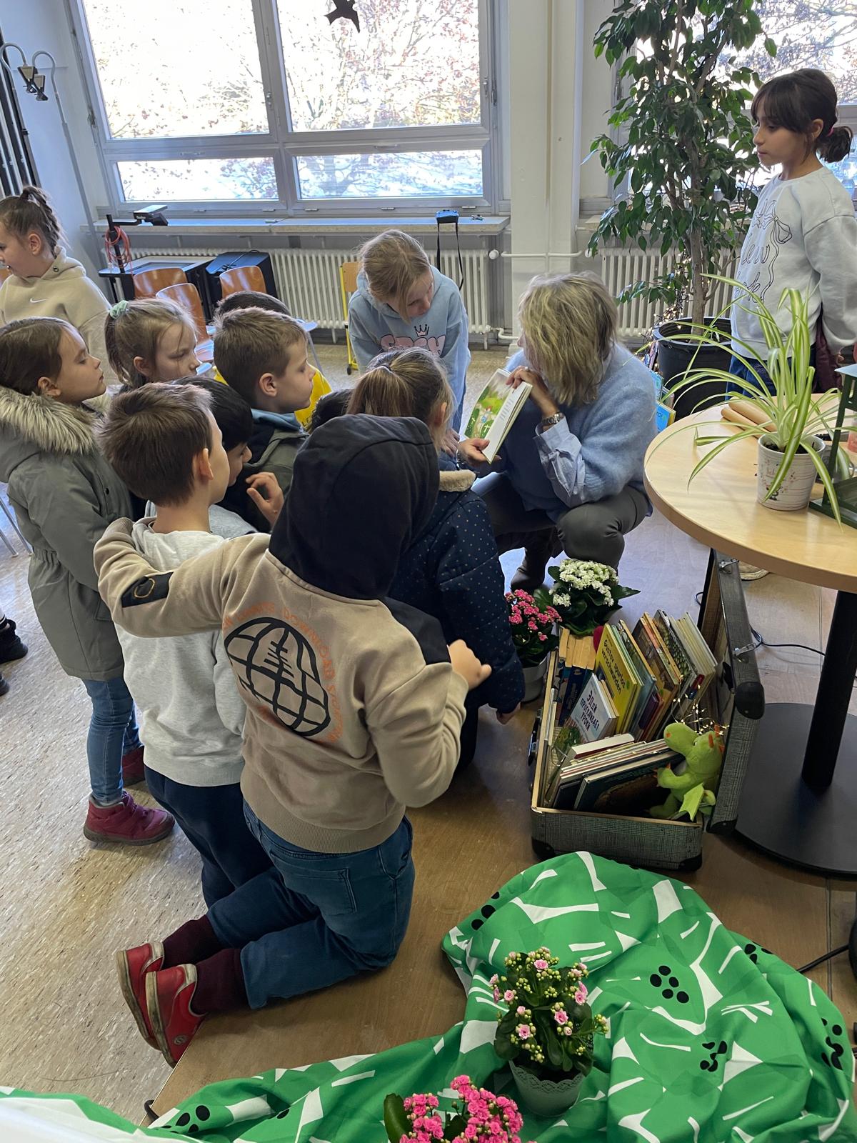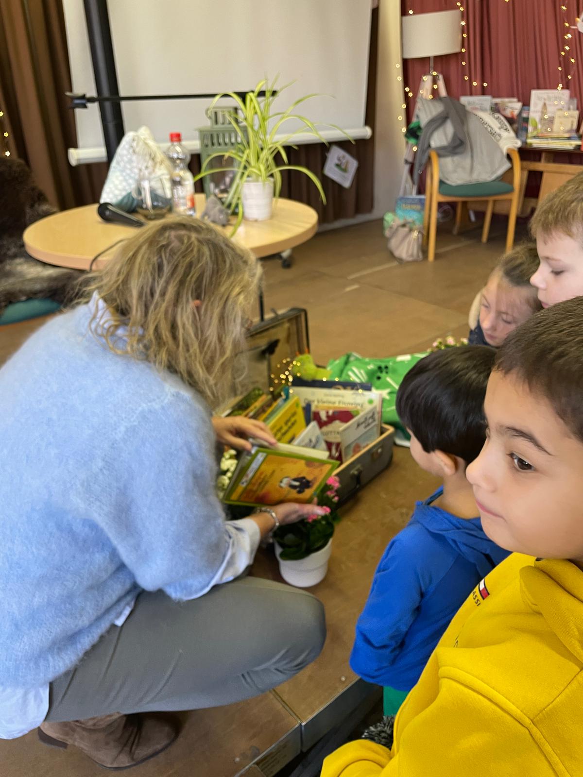Nach der Lesung haben die Kinder noch Fragen an Frau Schütze, die sie mit großer Geduld beantwortet. Die häufigste Frage ist: „Wann kommst du wieder zum Vorlesen?“ Es ist deutlich zu erkennen, dass die Kinder Freude haben.